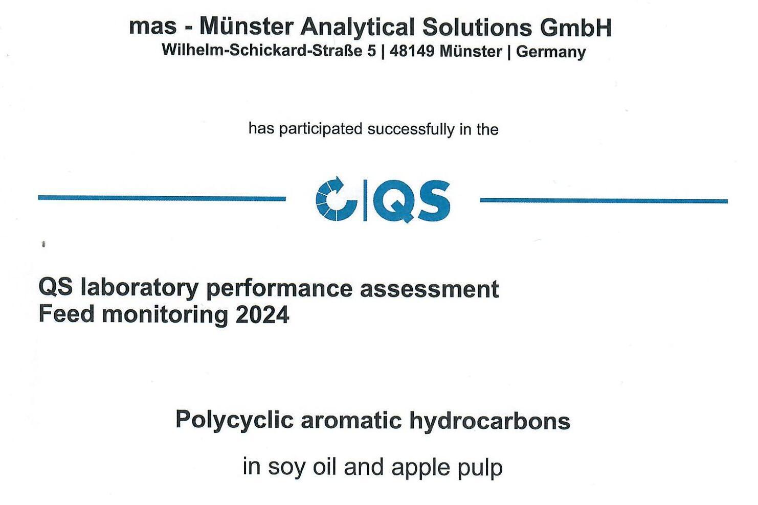 The German QS (Qualität und Sicherheit GmbH) operated a laboratory performance assessment (feed monitoring 2024) on Polycyclic Aromatic Hydrocarbons (PAHs) in soy oil and apple pulp.