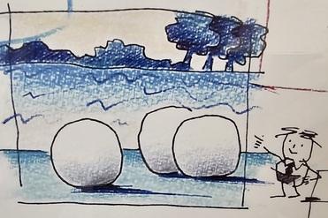 Ultimately, we chose a stylized representation of the GIANT POOL BALLS by Claes Oldenburg (1929-2022). Various sources describe the artwork created in 1977 as follows: